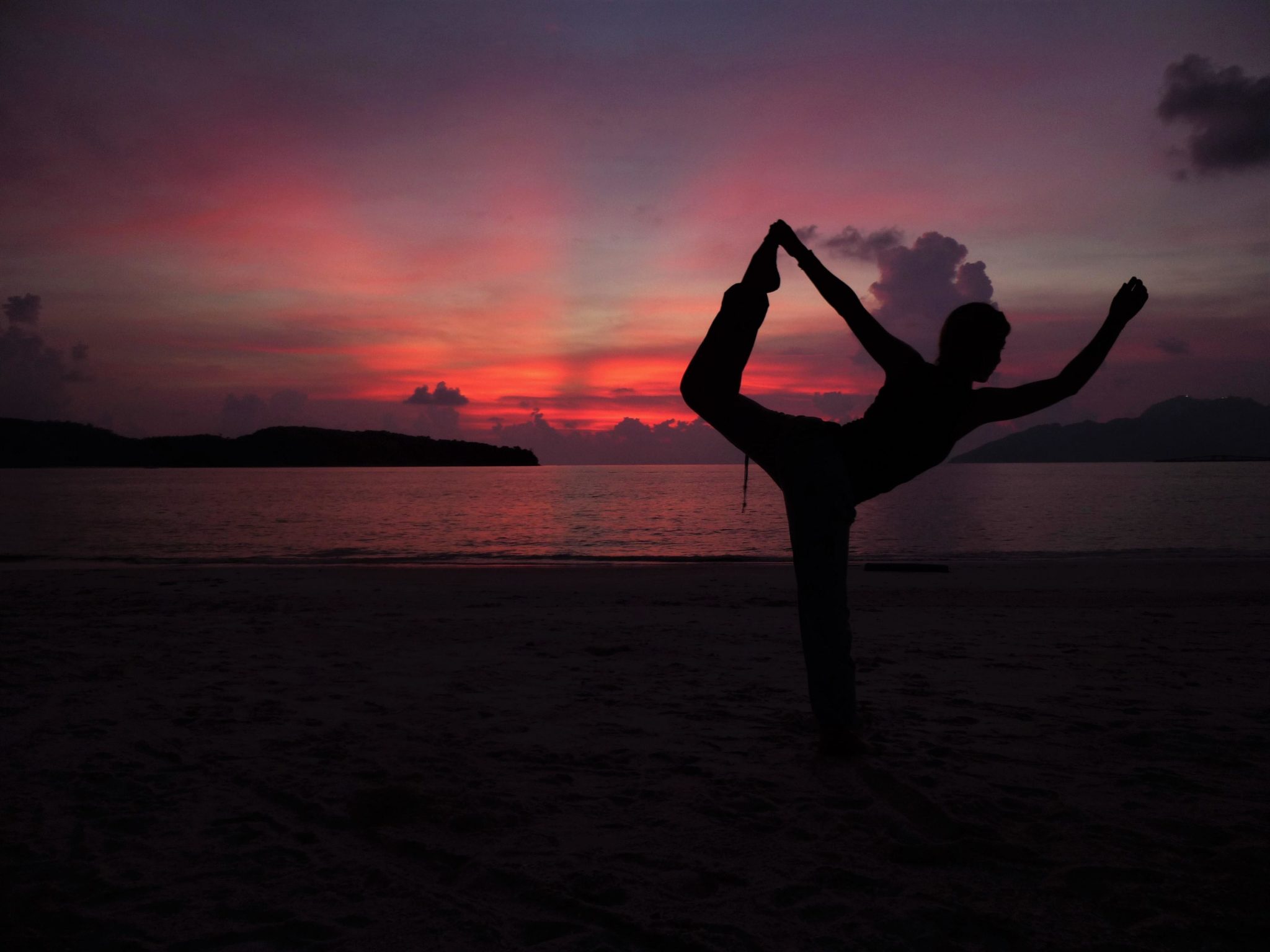 LANGKAWI – prázdninové letovisko s krásnými plážemi, množstvím turistů a vodních atrakcí mně na začátku přišlo až moc turistické, ale i tady se dal najít příjemný kousek pláže, kde se nikdo neproháněl na vodních skůtrech, vznášedlech či jiných blbinách; protože je tu skoro všude rovinka, kolo jako dopravní prostředek si můžou užít i méně zdatní cyklisté; nejkrásnější tu ovšem byly západy slunce, při kterých jsem jen tak zírala na měnící se barvu oceánu nebo cvičila jógu