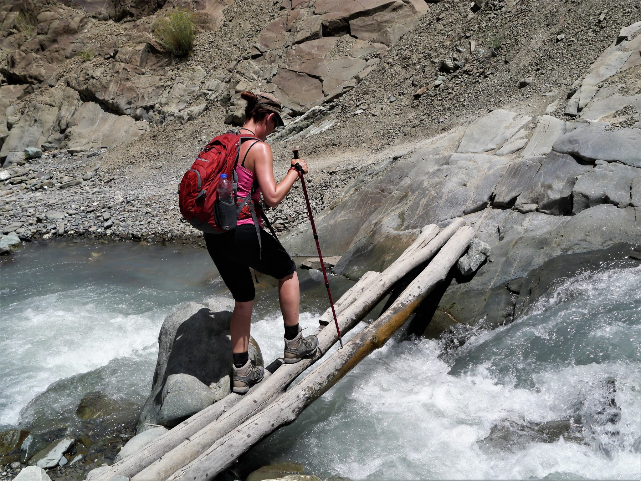 Ráno se po výtečné snídani vydáváme na poslední pouť našeho treku. Cesta vede už jenom z kopce a zpestřuje jí jen občasné přeskakování potoka. Při pohledu na čisťounký rozvodněný potok si uvědomuju, jak strašně jsem špinavá. Celý týden jsem se, kromě několika smočení důležitých partií v horském potoce, nemyla. Moje vlasy jsou slepené potem a prachem, což pod kšiltovkou každý den vytvořilo tuhou helmu. Ráno jsem ztuhlé pramínky vlasů vždycky shrábla prsty do culíku, nasadila čepici a jelo se na novo. Na rukách a nohách už mám tak velkou vrstvu opalovacího krému, potu a prachu, že by se do mě daly rýt hieroglyfy. Kůže na chodidlech v prvních dnech vytvořila bělavé vystouplé vrásky, které se teď sloupávají a vypadá to, jakoby mi nohy zplesnivěly. Dost možná, že to tak skutečně je. Jen na vysvětlenou bych ráda uvedla, že i když jsme většinou kempovali u potoků, voda v nich byla tak studená, že než se v něm celá vykoupat, to raději zůstanu špinavá. Odpoledne teploty navíc rychle klesaly a večer se blížily nule a než tu nastydnout, to raději zplesnivým. Na horkou sprchu se už ale neskonale těším.
