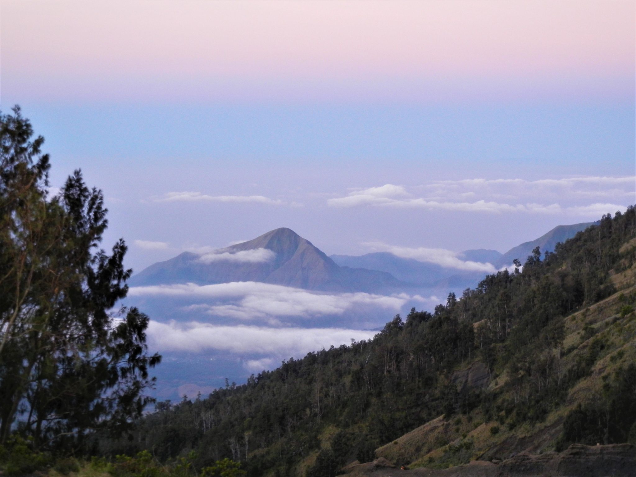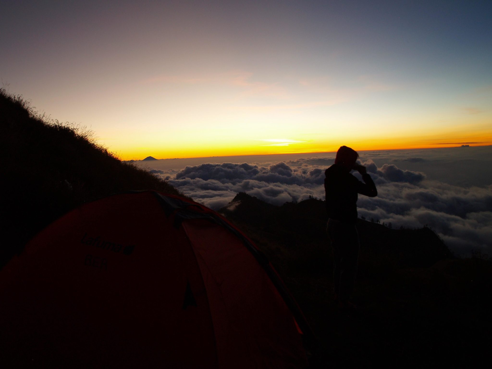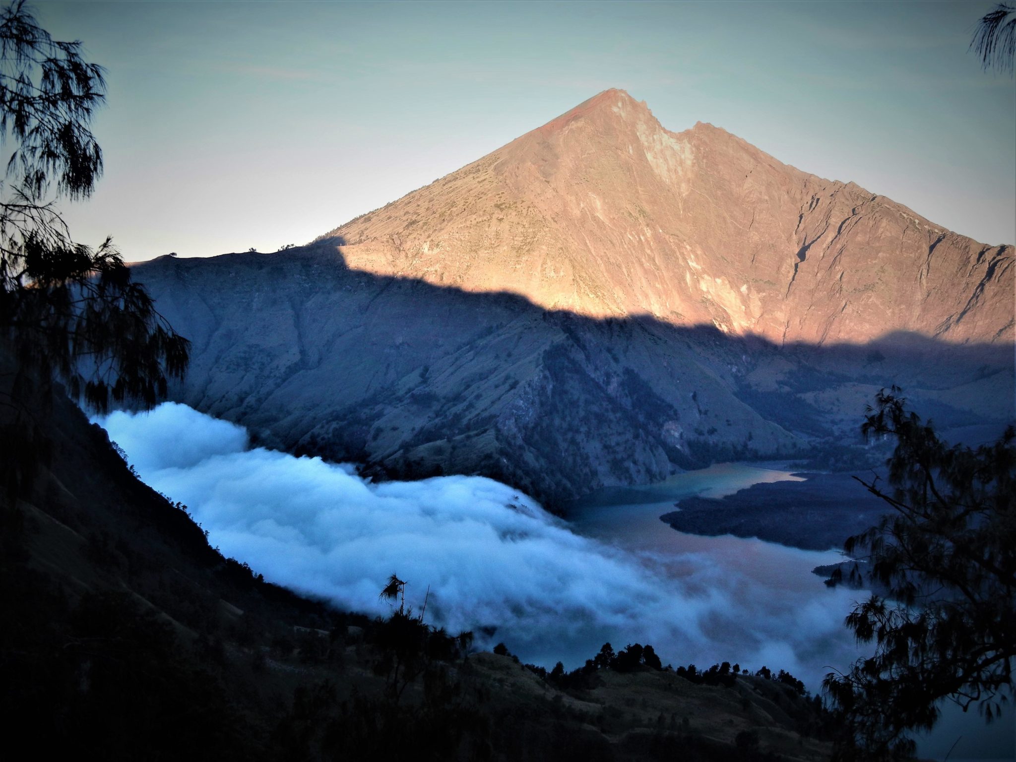 Z pod oblaků co chvíli vykoukne modrá hladina jezera spolu s hrůzu nahánějící kalderou Gunung Barujari. Dnes jsme co do výšky nikam nepokročili. Sestoupili jsme k jezeru, z poloviny ho obešli a znovu se vyškrábali na okraj kráteru. Z tábořiště je všudypřítomný nádherný výhled a samozřejmě i všudypřítomné odpadky. Nepořádek se snažím z hlavy vytěsnit pohledem do kráteru a na druhý největší vulkán Indonésie, kterému spíme dnes doslova v patách. Tísnivé, chladné a temné ticho mě zahání do spacáku znovu hned po západu slunce.