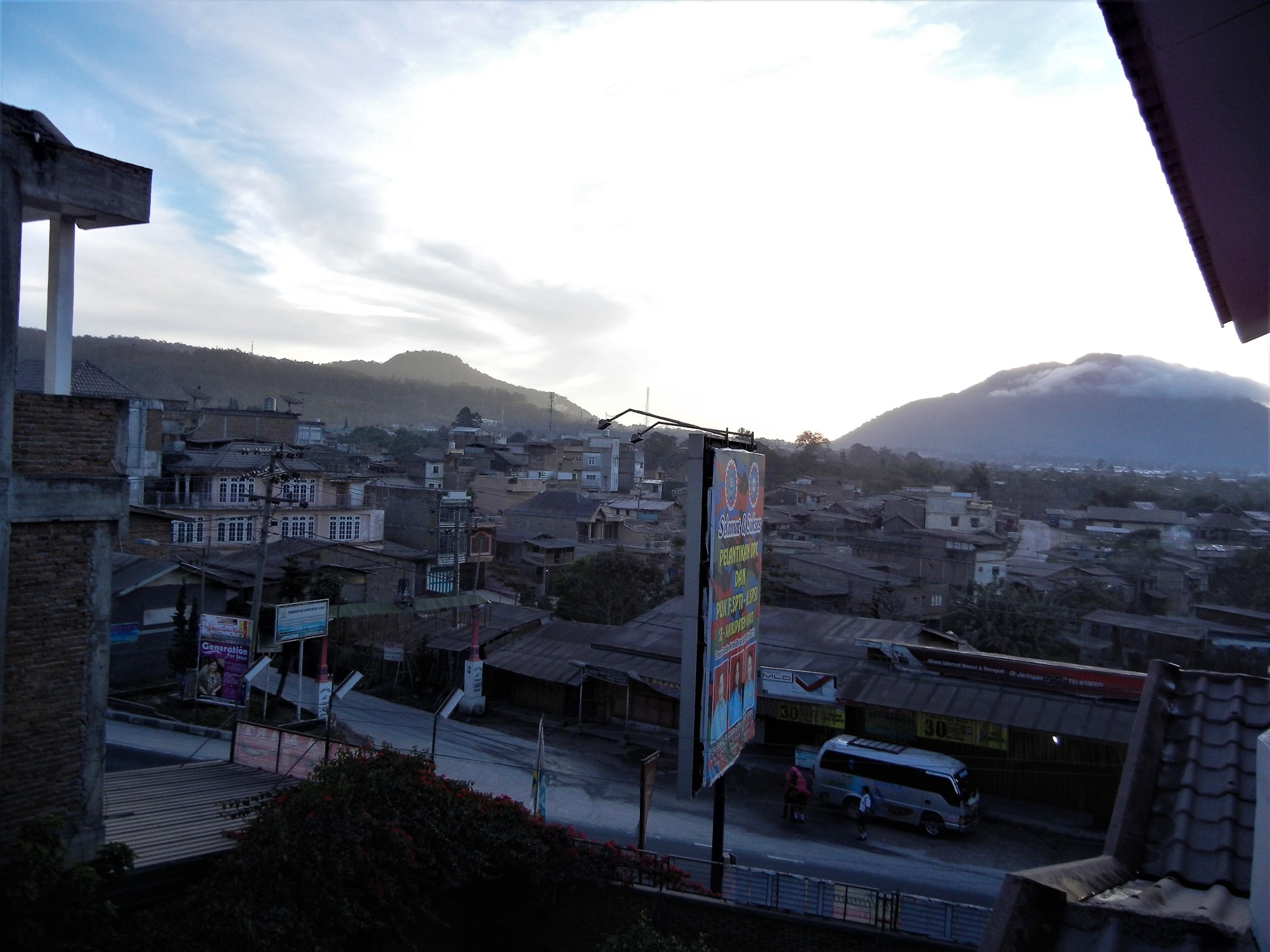 Že se po zeleném tropickém ráji, po pouhých čtyřech hodinách cesty, ocitneme v šedém popelem lehlém městě, zatím ještě netušíme. Sopka Sibayak soptila naposledy v roce 1881, což už je tak dávno, že by člověk pomalu zapomněl, že se to vůbec může stát. Zato Sinabung o sobě čas od času vědět dává. V roce 2010 bylo kvůli její aktivitě evakuováno 10 tisíc lidí. Dvě další erupce byly zaznamenány v roce 2013, kdy Sinabung chrlil sopečný prach až do výšky 7 km. Na Sinabung i Sibayak bychom pochopitelně rády vyšplhaly, protože z jejich vrcholků má být údajně krásný výhled a láká nás i trocha toho dobrodružství.