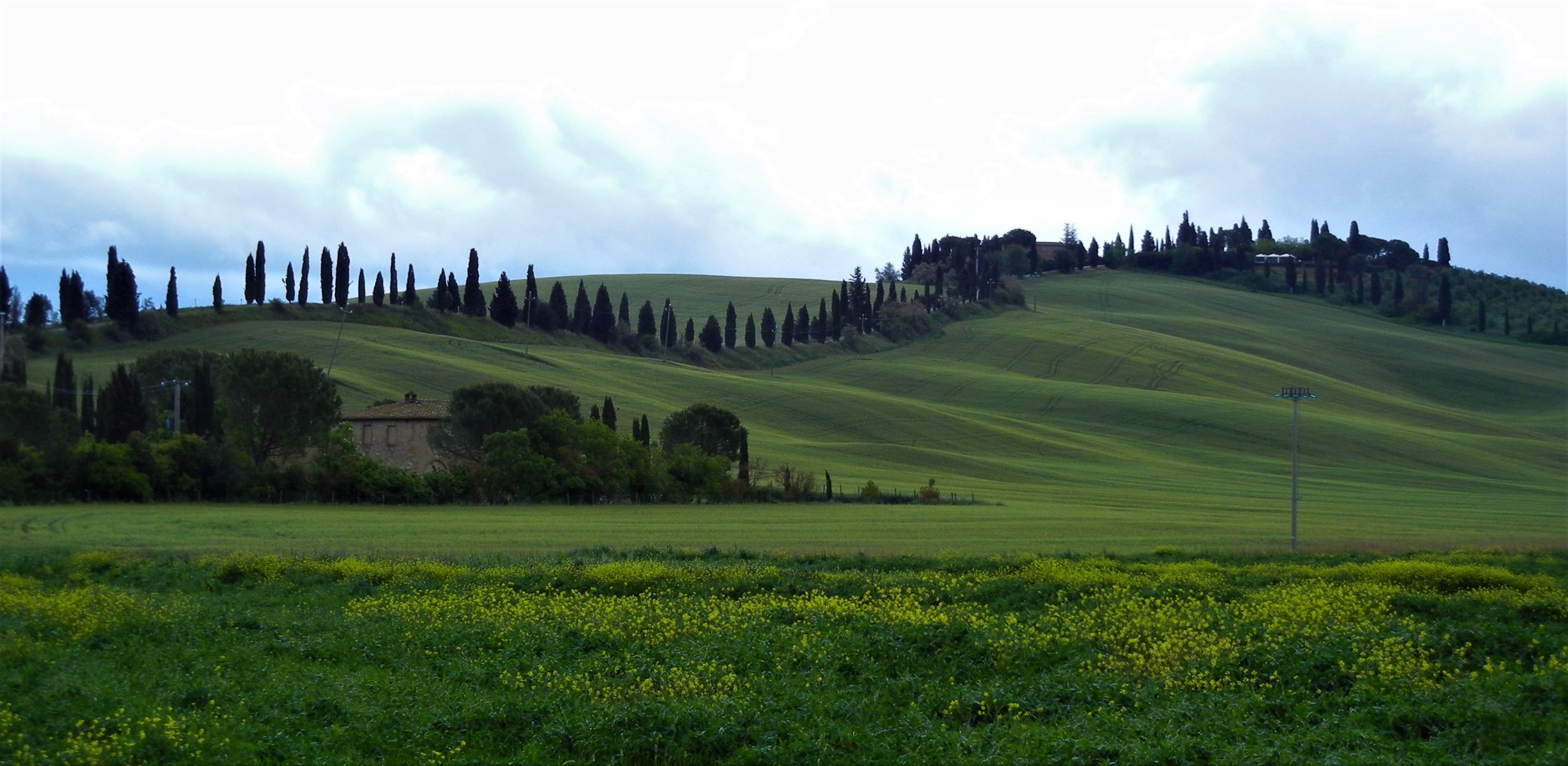 Na snové kopce lemované cypřiši v oblasti Crete Senesi jsem se obzvlášť těšila. Pěší výlet do pohádkové krajiny se ale změnil na klouzání blátem a ždímání promočeného oblečení. Vytoužené výhledy se schovaly za hradbu deště a my zbaběle prcháme a hledáme náhradní plán. Tak snad příště…