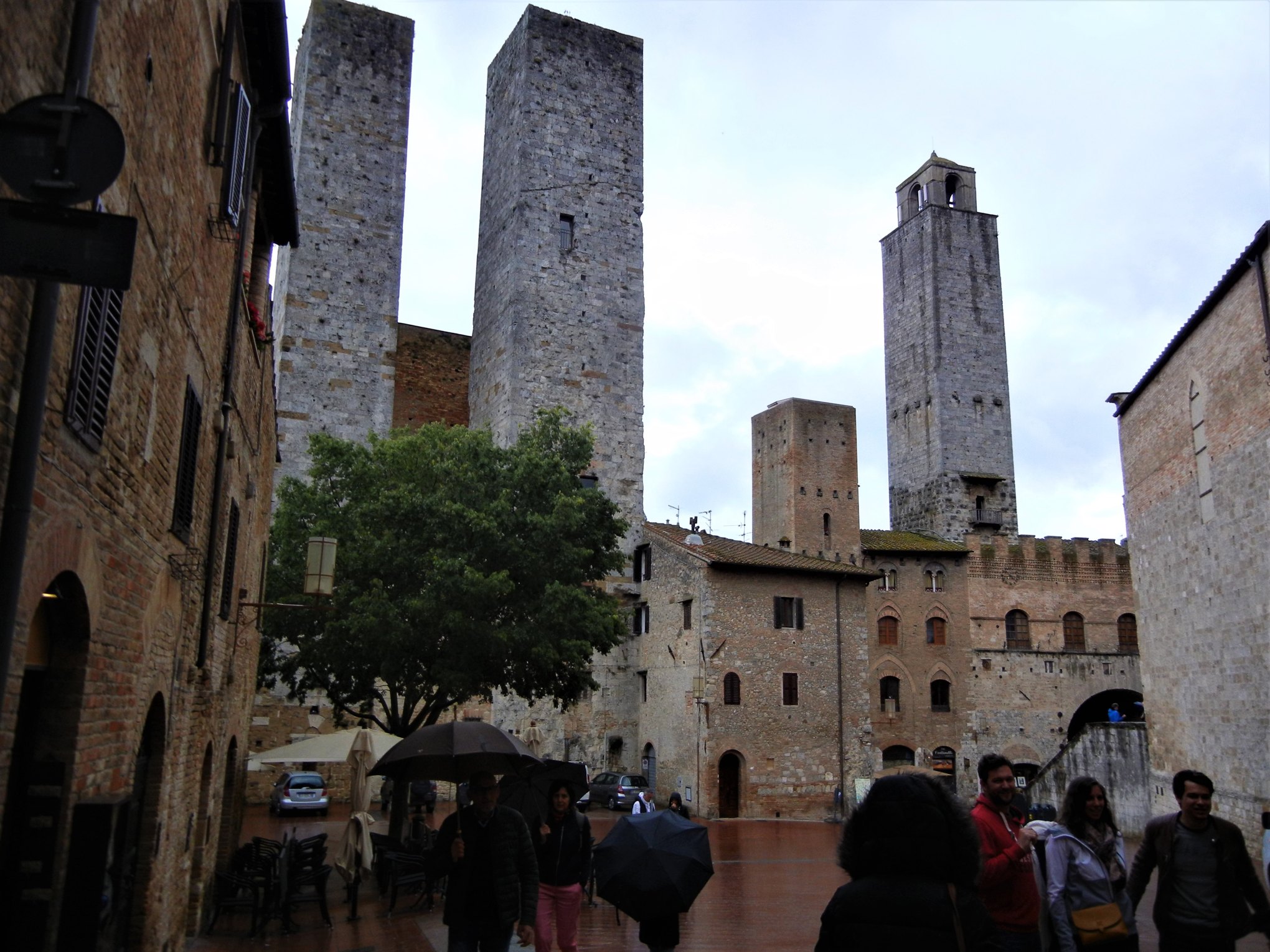 Návštěvu další historické perly, kterou Toskánsko nabízí, zvládáme za jedno dopoledne. San Gimignanu se pro jeho 15 dochovalých rodových věží přezdívá Toskánský Manhattan. Už zdálky jsou vidět vysoké hranoly tyčící se k nebi. Každý z nich patřil jednomu významnému rodu, čím bohatší, tím vyšší a pevnější věž. Na nejvyšší Torre Grossa vysokou 54m se dá za poplatek vylézt a pokochat se pohledem na celé město a zvlněnou krajinu.