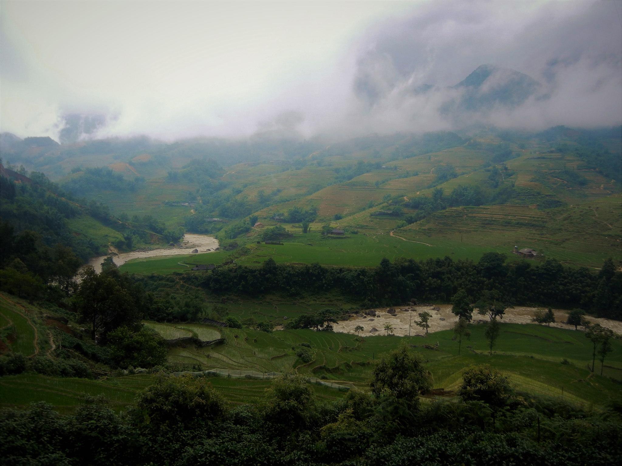 Ubytování probíhá celkem hladce v příjemném hostelu za 10$ a dopolední spánek při otevřeném okně na čerstvém horském vzduchu nás natolik osvěžuje, že se odpoledne vydáváme na první výlet k nedalekým vodopádům. Nejde o nijak náročný pochod, ale po rušné a zaprášené Hanoji jsem šťastná, že jsem konečně v přírodě a všude okolo jsou jen zelené kopce a nic než kopce. Sapa leží 1650 m n. m. a díky tomu tady nevládnou horka jako na pobřeží, ale příjemné podnebí vyžadující v podvečer dokonce dlouhý rukáv. Městečko leží na strmém svahu a když budeme mít štěstí na počasí, otevře se nám neopakovatelný výhled do hor a na kaskádovitá rýžová políčka