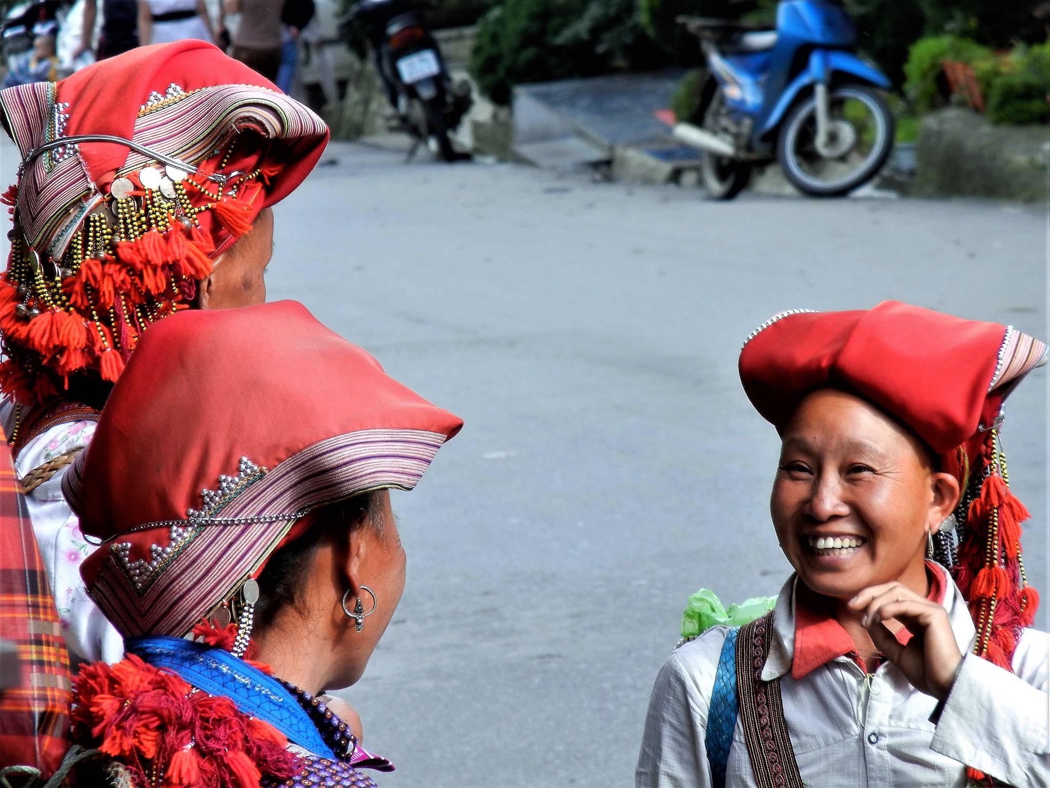 Další skupinou, která neuniká mé pozornosti jsou Červení Zaové. Ženy nosí výrazné červené šátky s třásněmi, ze kterých si na hlavách motají zvláštní turbany. I ony většinou docházejí do Sapy z okolních vesnic, do kterých nás neustále zvou a nabízejí tzv. homestay. Tedy ubytování přímo v rodině, které však velmi často ubytováním v rodině vůbec není. Mnoho turistů se už nechalo zlákat vidinou poznání života tohoto etnika, ale realita vypadá nakonec úplně jinak. Pro turisty mají připravené oddělené bydlení a s rodinou se prakticky nepřijde do styku. Samozřejmě že život v turistické oblasti automaticky neznamená povinnost mít dveře domu otevřené dokořán. Ale pokud na rodinnou atmosféru někoho nalákají, nemohou se pak divit, že se jim turisté hrnou přímo do kuchyně. Na jedné straně by to chtělo větší respekt cestovatelů k soukromí místních rodin. Na druhé straně uvědomění si místních, že stát se živou atrakcí přinese možná peníze, ale příjemné to není.
